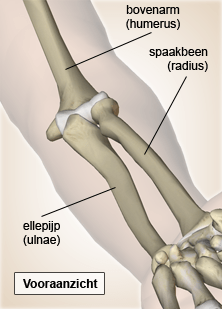 Nerves and blood vessels run along the elbow. The nerves transmit impulses to and from different parts of the arm. This allows us to control our muscles and perceive pain. The blood vessels transport blood so that the entire arm and hand are supplied with oxygen and nutrients.