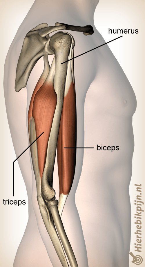 For non-acute pain in the upper arm, it is often necessary to determine where the underlying cause lies. Pain in the shoulder is often felt in the upper arm. The long tendon of the biceps even runs through the shoulder capsule and attaches to the shoulder, which may explain why the pain is felt in the upper arm.